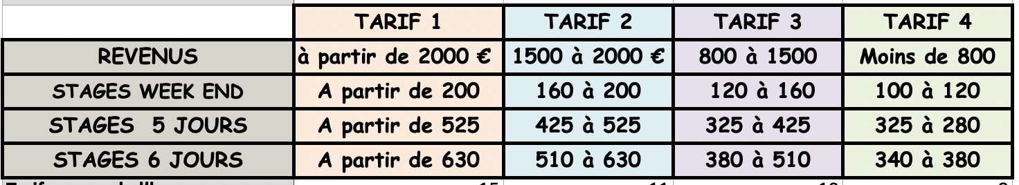 Ces tarifs incluent la location des salle, le salaire pour la préparation et l’animation du stage, le temps de préparation, d’organisation (recherche et réservation des salles), de communication (conception plaquettes, affichage, mise en ligne sur sites divers et réseaux sociaux), gestion des inscriptions, des paiements, de la comptabilité de l’action, l’accueil et le suivi des stagiaires et le pourcentage de gestion de l’association Pepi MORENA ou de CREALEAD.
